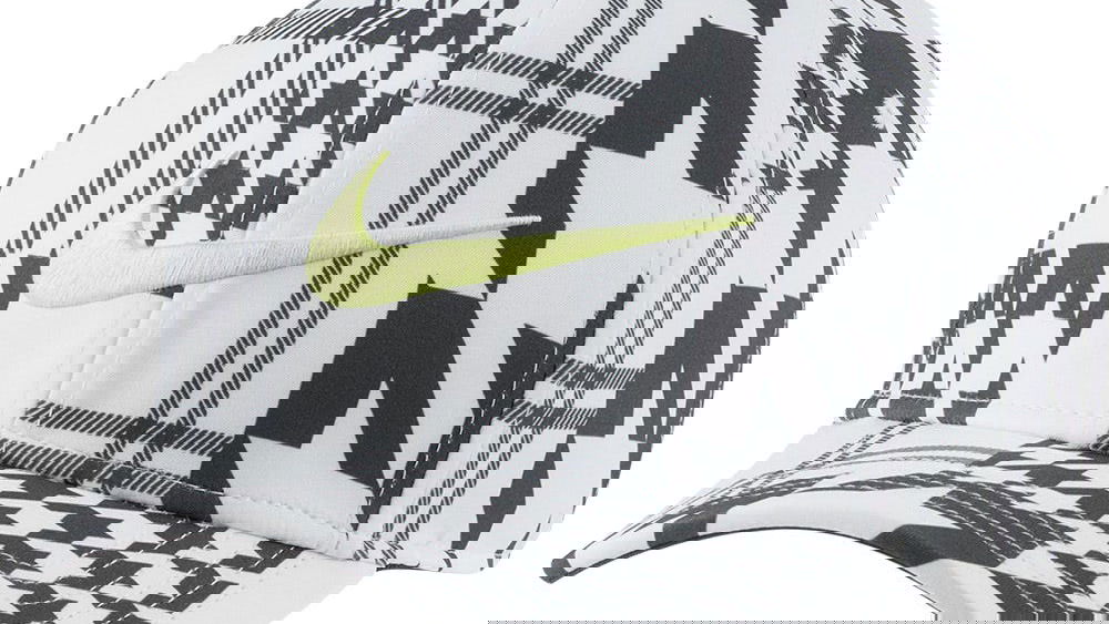The popular Nike Aerobill Classic 99 cap has landed for 2021 and this time features an all over Houndsooth print effect, ready to be worn at this year's fourth and final major championship. The Aerobill peak helps to provide a lightweight feel and increases reliability over time, while the highly breathable fabric prevents over heating in the warmest conditions. A moisture wicking stretch sweatband couples with Dri Fit technology to elevate the comfort factor once more - perfect for wearing all year round. The ideal choice to complete this season's hottest Nike looks.