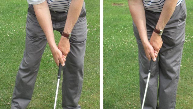 Here PGA coach David Bown addresses the ball with a normal stance with the hips and hands slightly forward of centre, as seen in step 1.