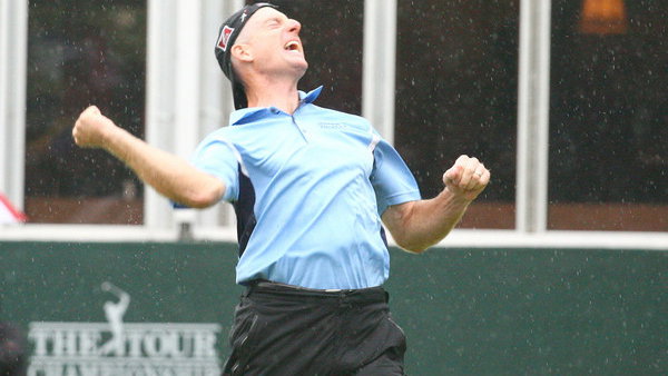 “I must have saved par nine times today using my lob wedge and putter” said Furyk who regulary twisted his cap around to stop rain drops dripping on his ball. “I got up and down when I needed to and that’s what won me the tournament.”