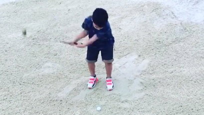 The golf ball doesn’t fall far from the tree in the Day family, according to this video showing Aussie Jason Day’s five-year old son, Dash, splashing out of the sand.