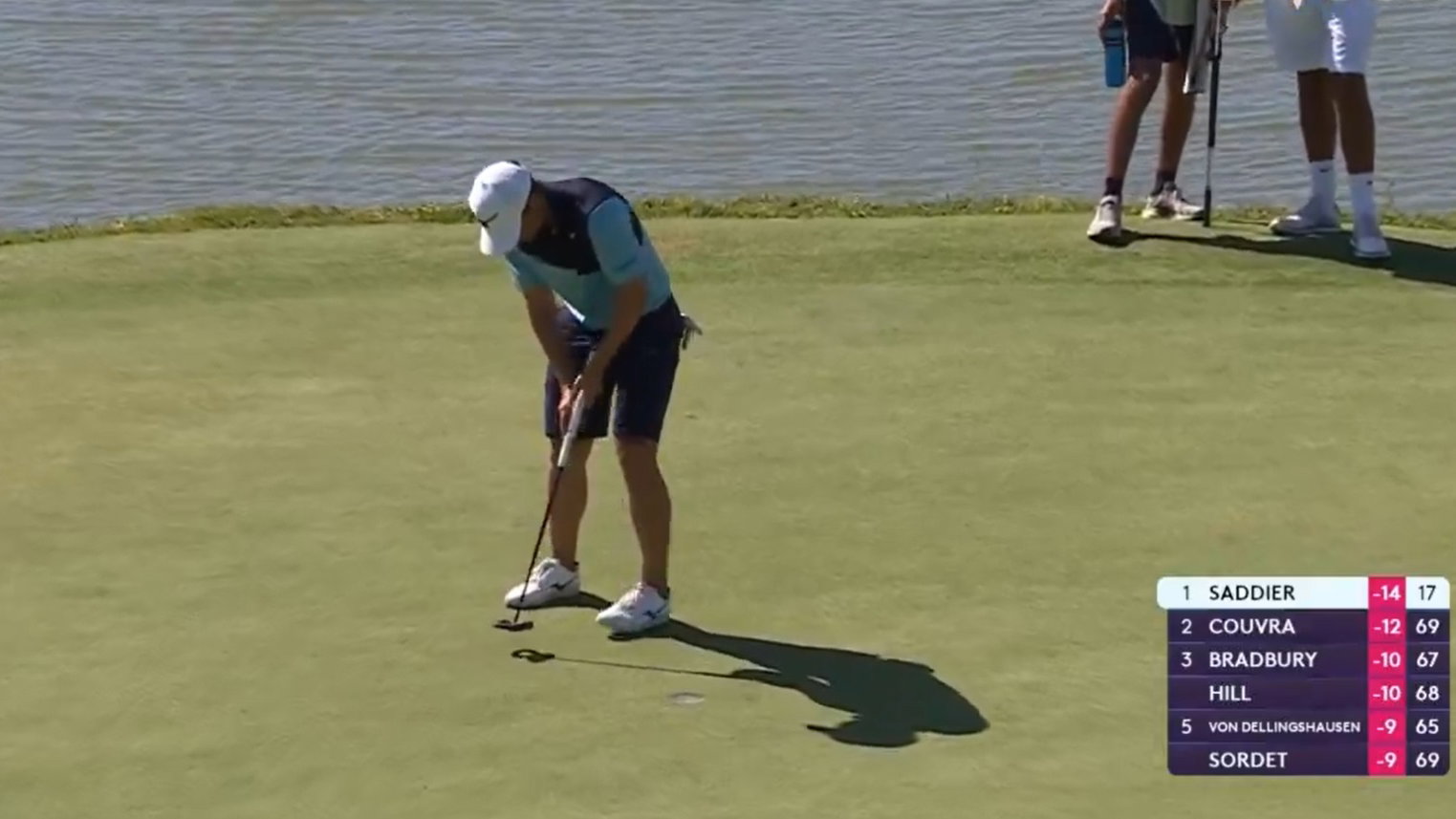 Saddier, meanwhile, rolled home a 12-footer to take a three-shot lead into the final two holes.